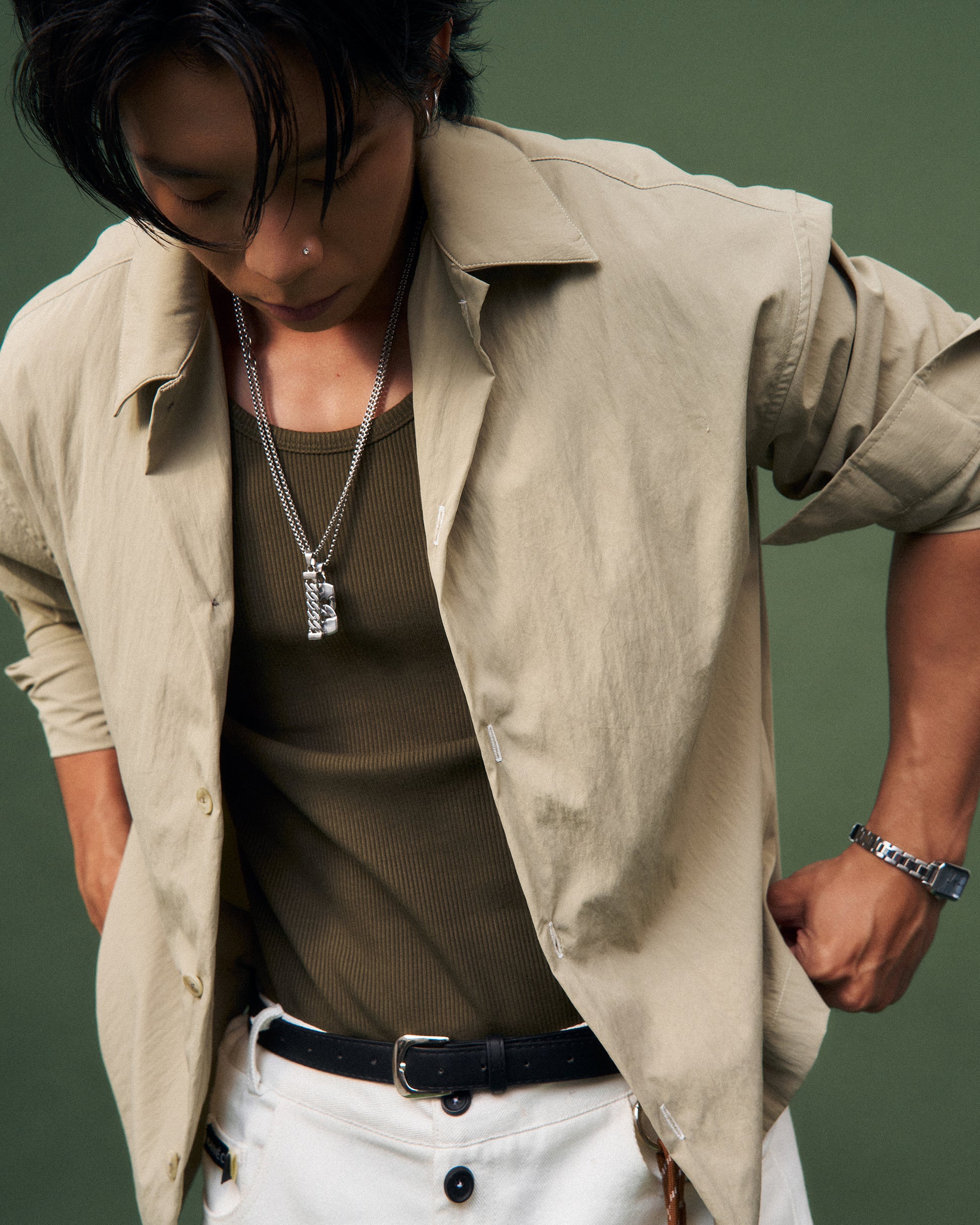 Áo sơ mi nam tay dài màu beige
