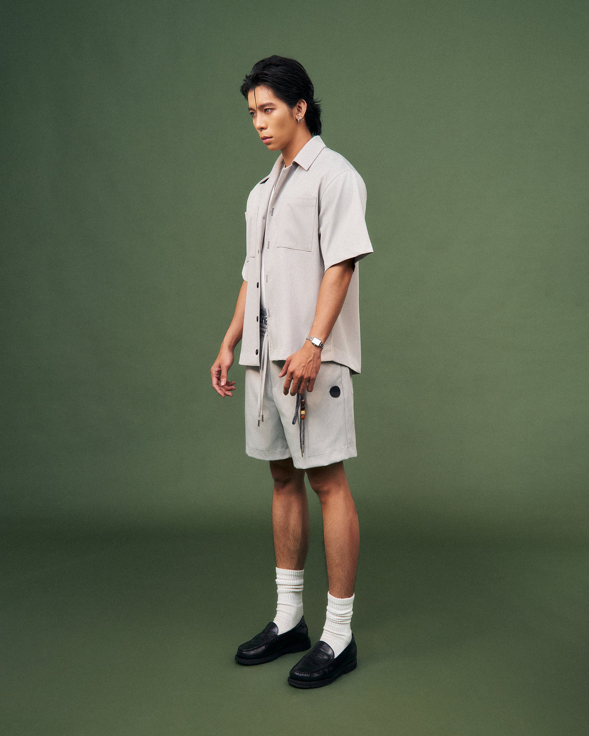 Quần shorts xám lưng thun có dây rút