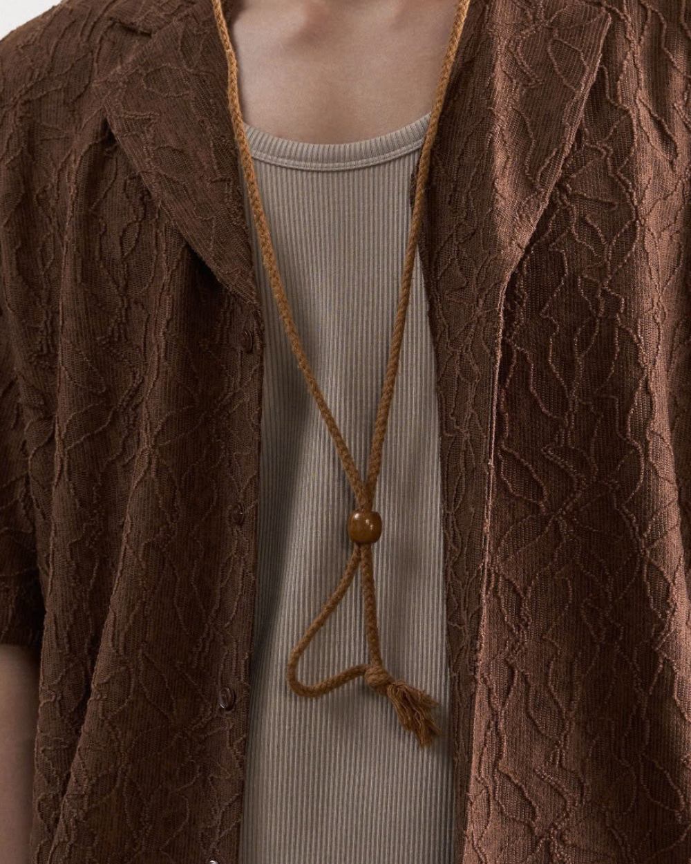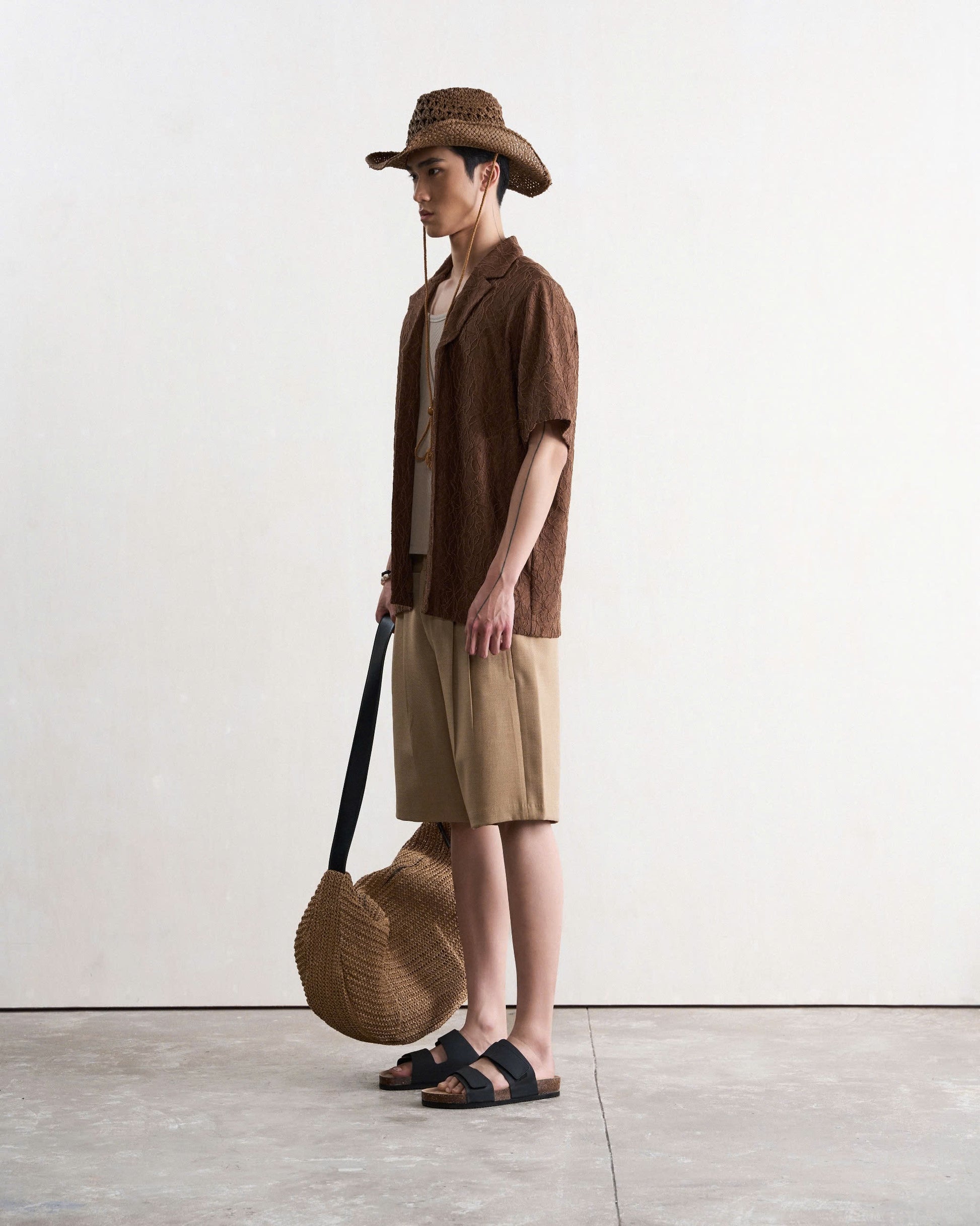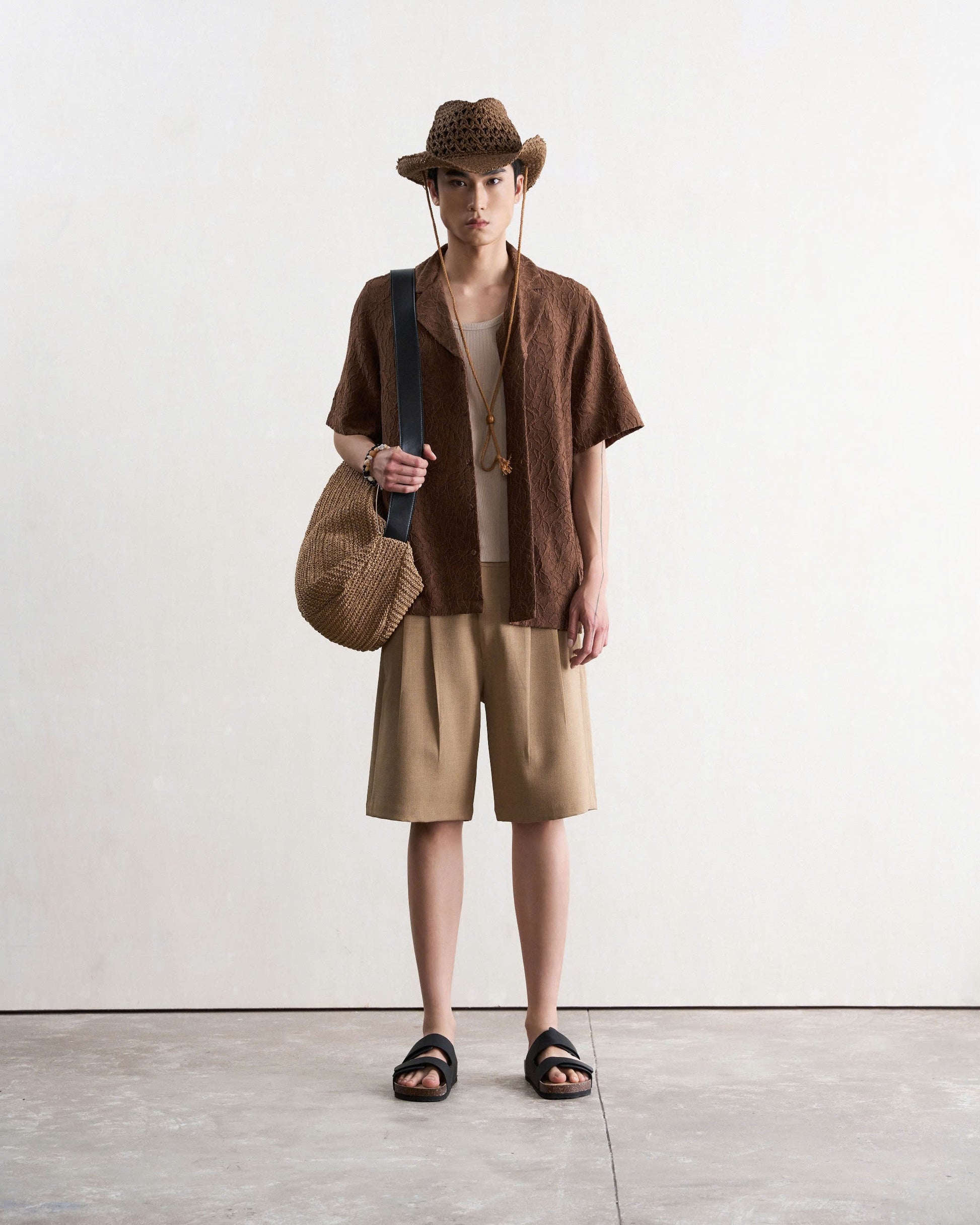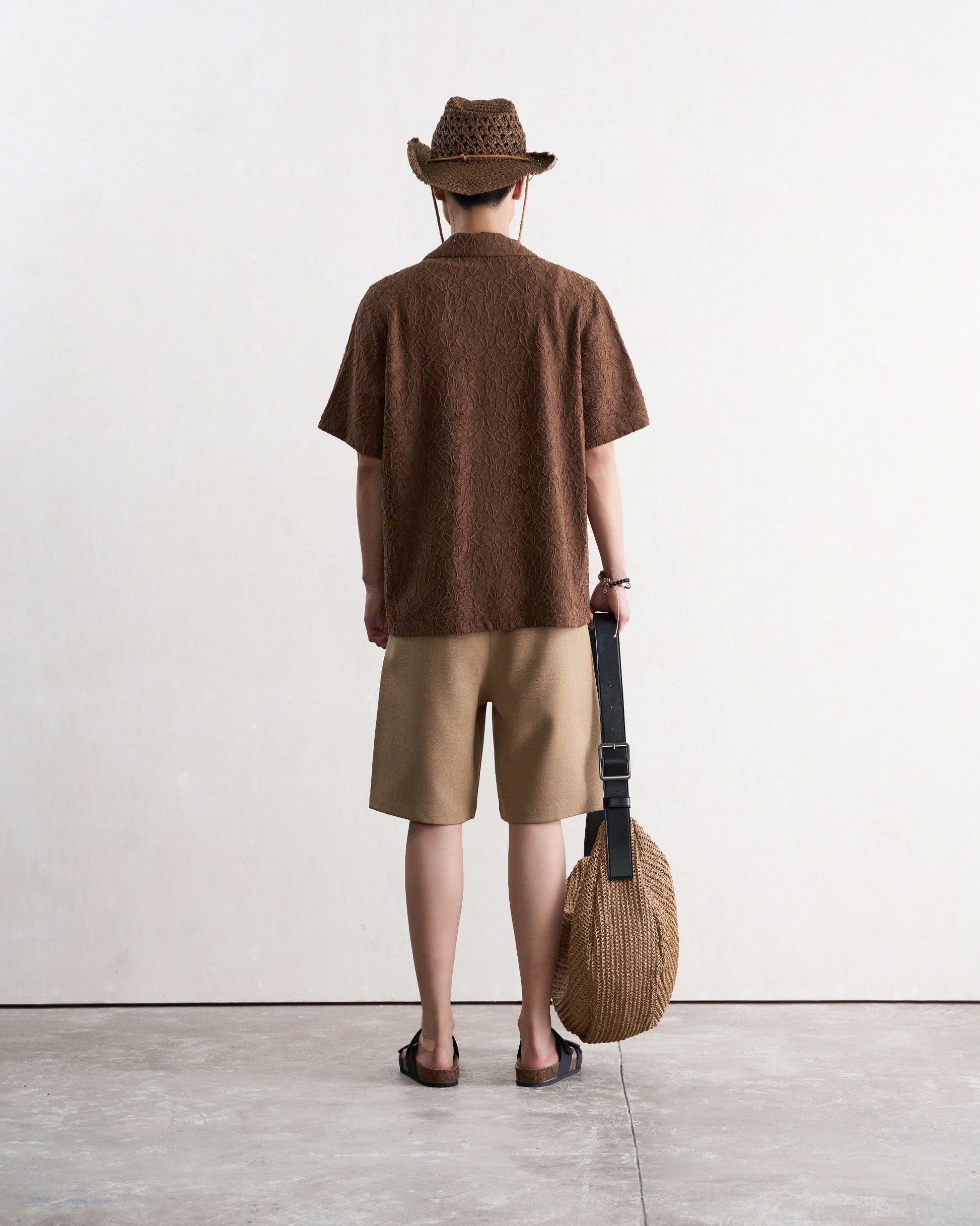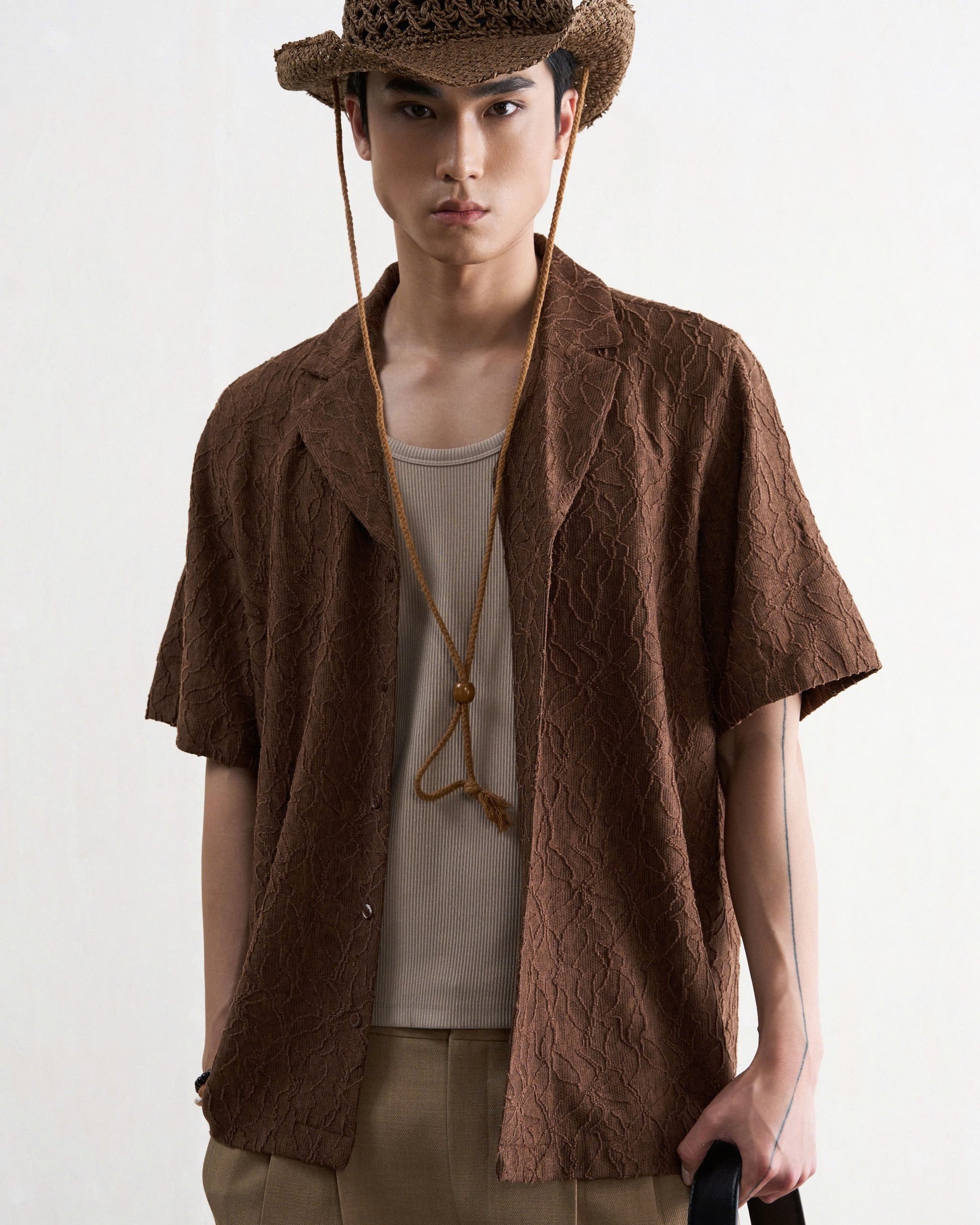 Áo sơ mi nam cộc tay họa tiết màu nâu