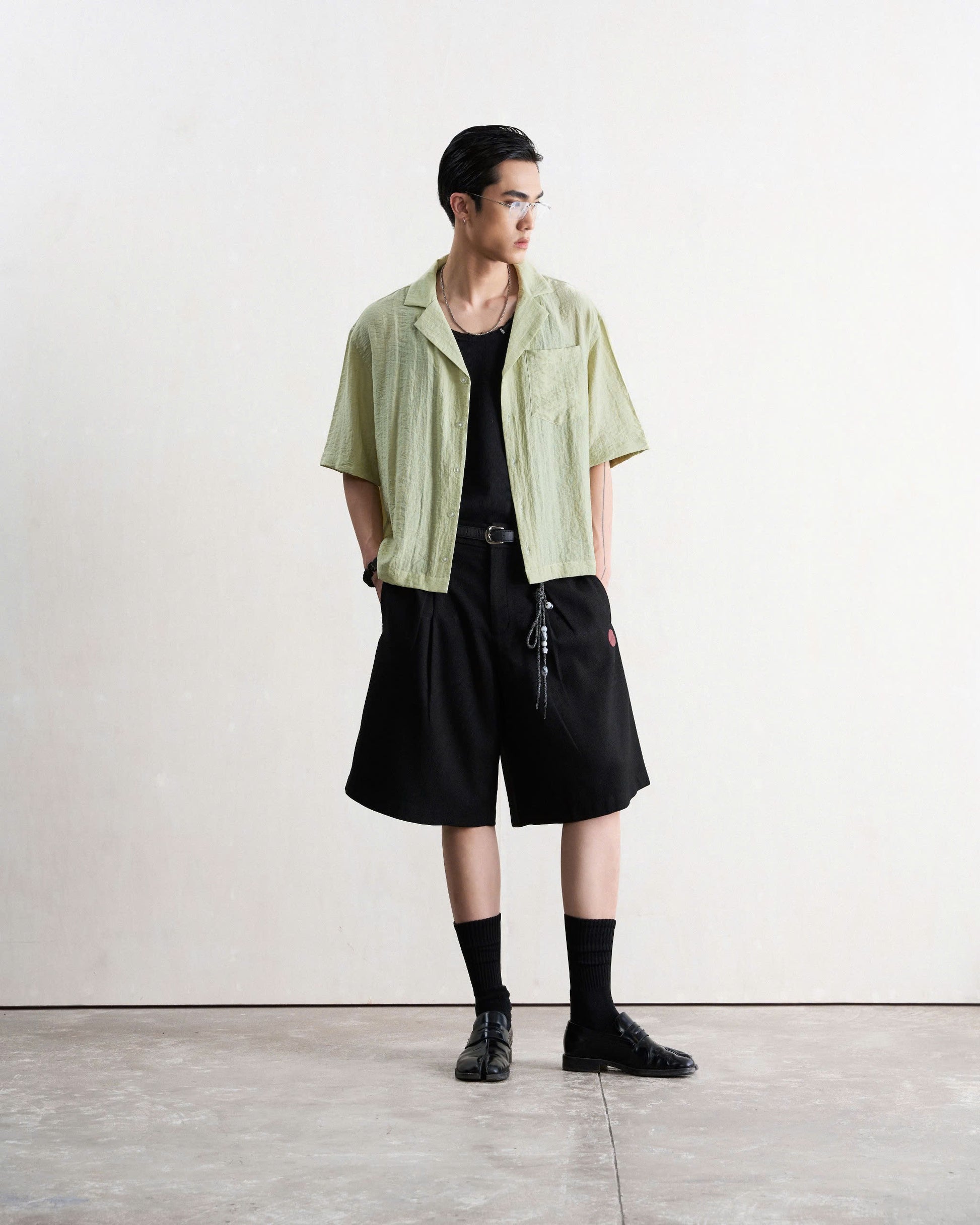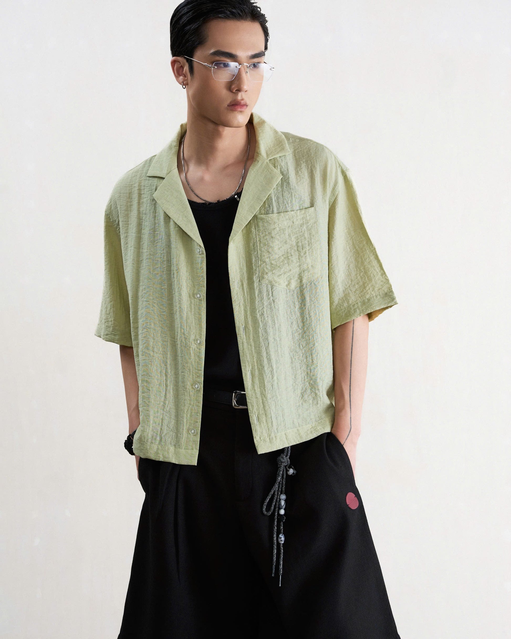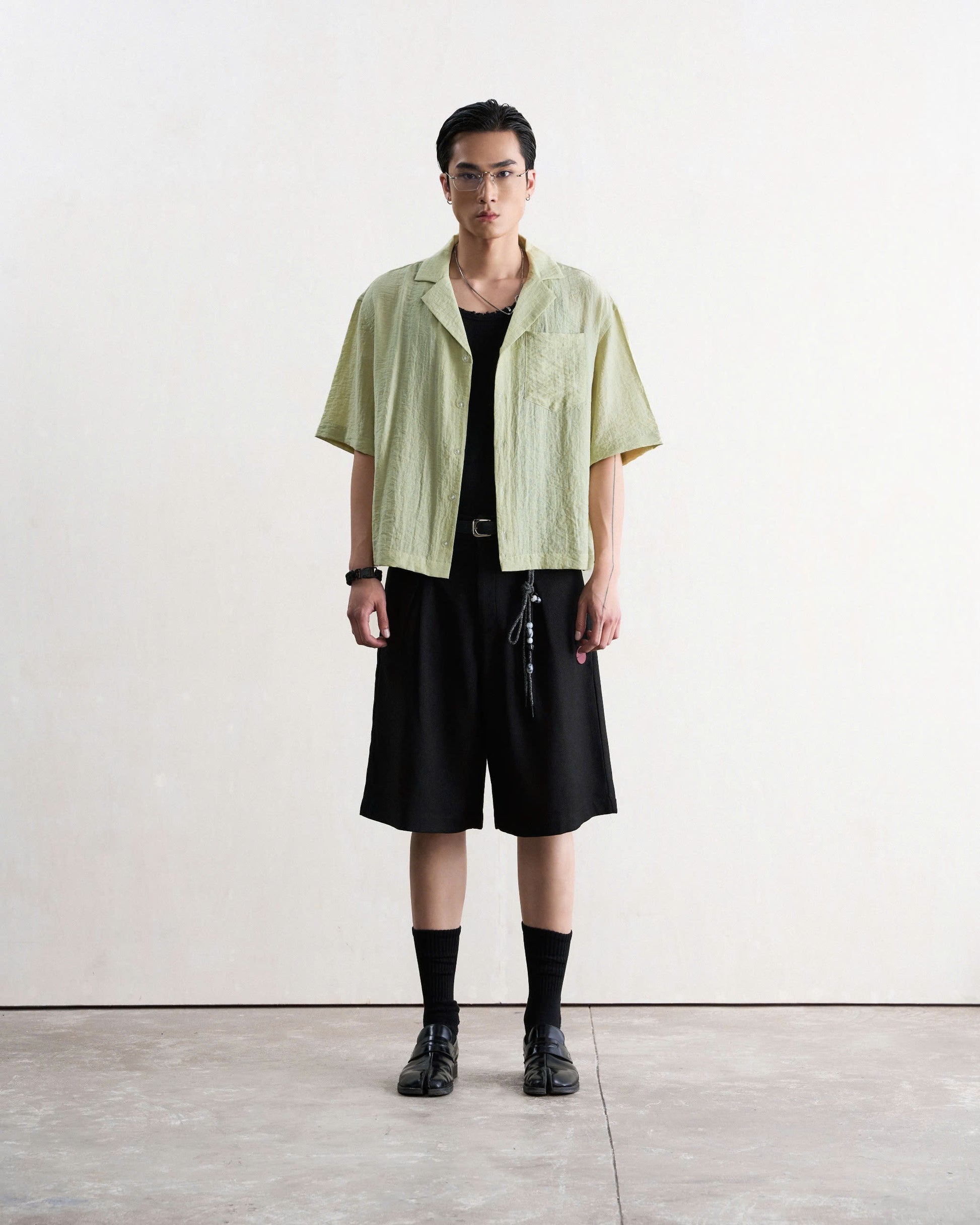 Áo sơ mi nam tay lửng xanh bơ